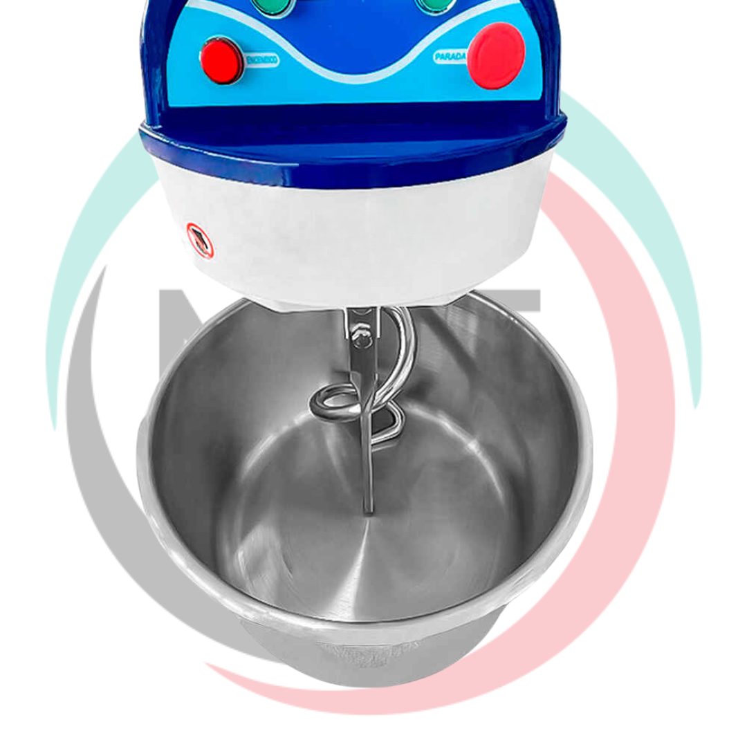Está equipada con un bowl en acero inoxidable, que garantiza higiene, durabilidad y fácil limpieza. Su sistema de transmisión por correa y su motor de 1 HP monofásico proporcionan un funcionamiento estable y confiable. Además, cuenta con dos velocidades, permitiendo adaptar el amasado según el tipo de masa y la receta.