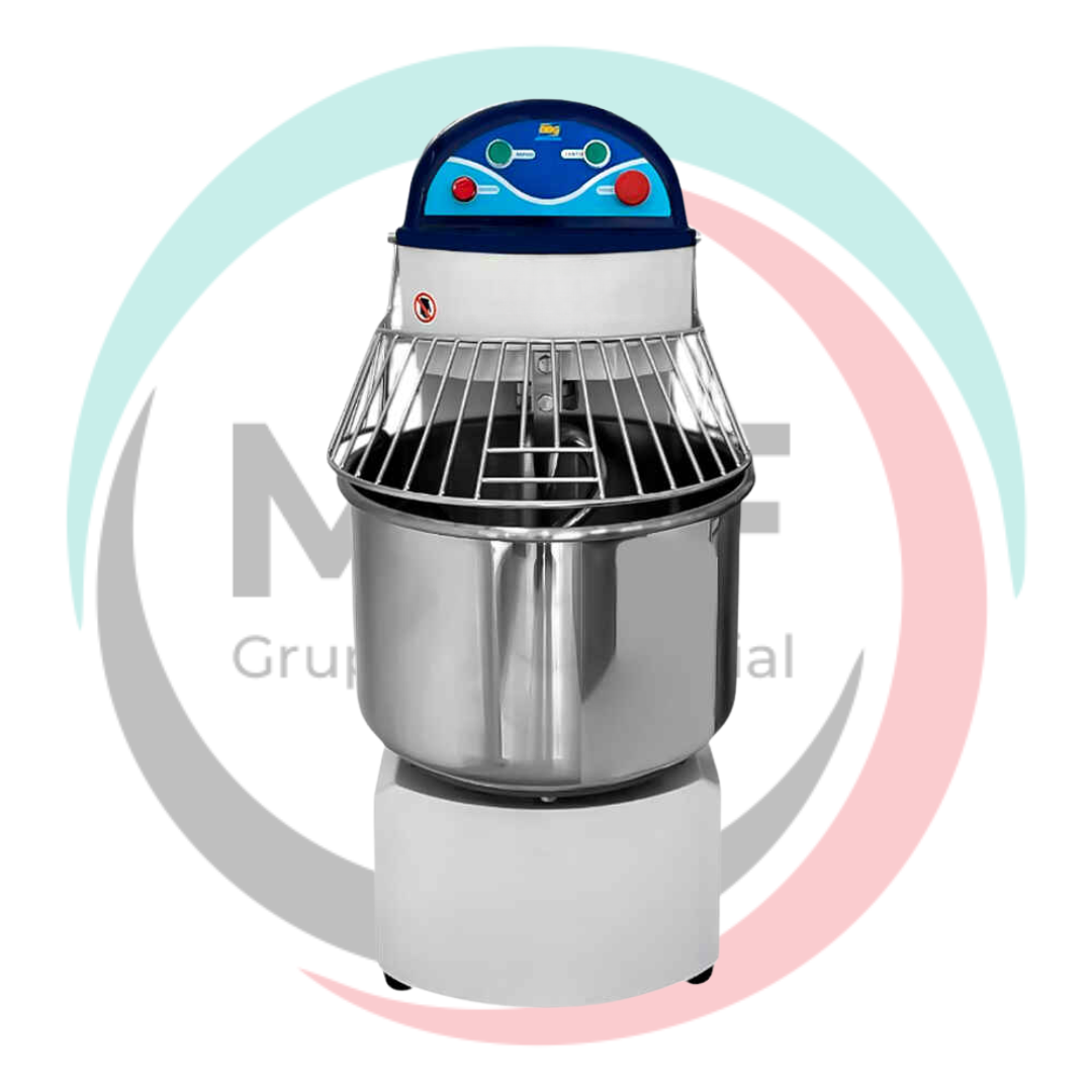 La amasadora industrial MASH-20 es un equipo profesional diseñado para el amasado eficiente y homogéneo de diferentes tipos de masa en panaderías, pastelerías y negocios de producción alimentaria. Con una capacidad de 20 litros (½ arroba), es ideal para operaciones que requieren rendimiento constante, uniformidad y control en el proceso de mezclado.