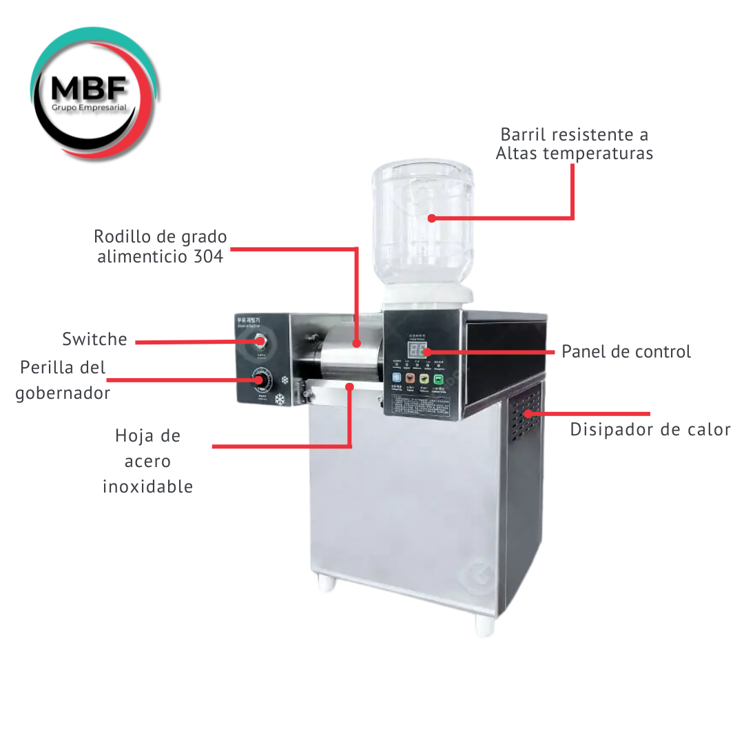 - Calidad en la fabricación: Fabricada con materiales de alta calidad, esta máquina de hielo Bingsu está diseñada para ser duradera y resistente. El cuerpo exterior está construido en acero inoxidable, lo que asegura su resistencia a la corrosión y facilita su limpieza diaria, manteniendo los estándares de higiene necesarios para la preparación de alimentos.