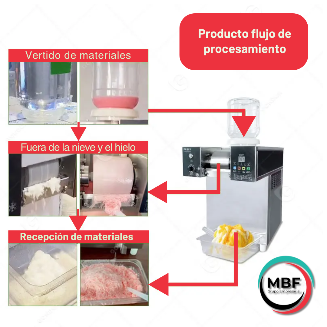 - Alta capacidad de producción: La máquina tiene una capacidad de producción excepcional, lo que permite crear grandes volúmenes de hielo Bingsu en un tiempo reducido. Esto la convierte en una herramienta indispensable para establecimientos con un flujo constante de clientes, garantizando siempre una producción rápida y sin interrupciones.