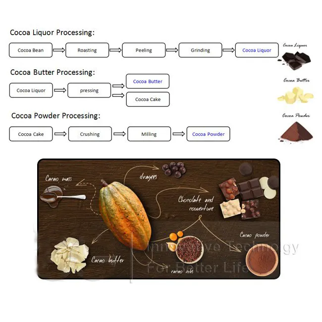 • Elaboración de productos derivados del cacao: Adecuado para la producción de manteca de cacao, polvo de cacao y otros subproductos que requieren un procesamiento preciso y eficiente de los granos de cacao.