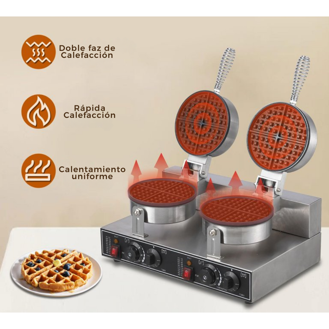 Producción rápida: dos waffles simultáneos, ideal para momentos de alta demanda.